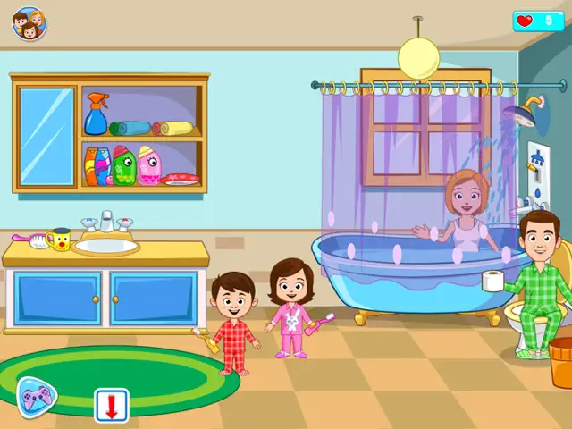 Launch the game and choose a character—mom, dad, or one of the six kids. Explore the house by tapping on rooms like the kitchen, living room, or garden. Interact with objects like the TV or cooking utensils to start creating your family story. Move characters between rooms and customize their outfits to set the scene!
